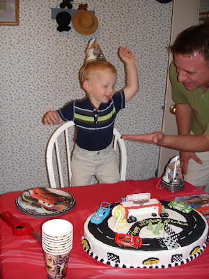 Joshua had his two year appointment today. He had one shot, so not too bad. He is in the 50th percentile for his height and weight. He was pretty mad at the nurse after receiving the shot, but was very proud to show daddy his ouchie.